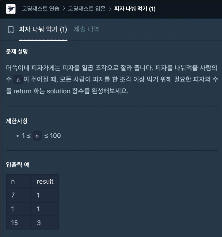 1. n / 7์ ํ๋ฉด ๋ชซ์ ๊ตฌํ ์ ์์ง๋ง ์์์ ์ ๋ฒ๋ ค์ง๋ค.