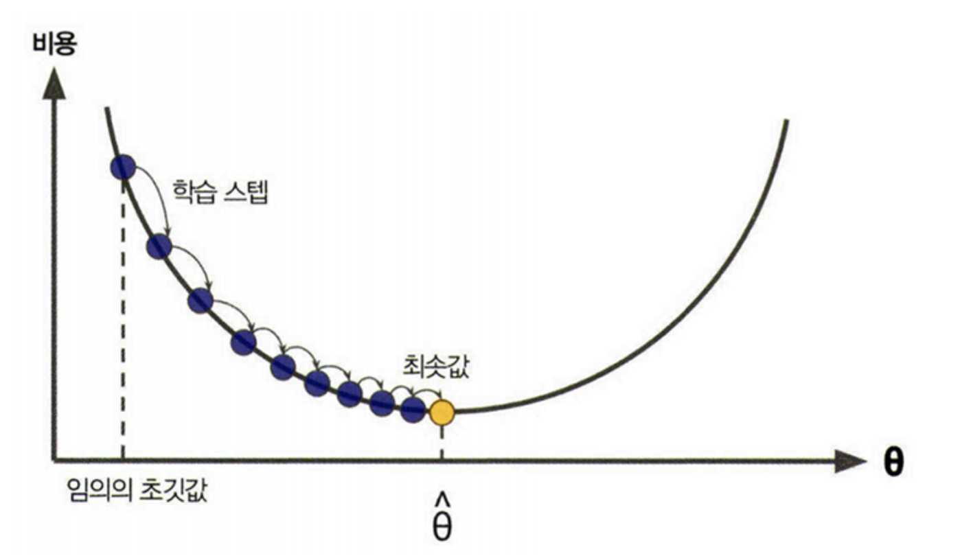 4) ๊ฐ ๊ฐ์ค์น๋ฅผ ์ค์ฐจ๊ฐ ์ค์ด๋๋ ๋ฐฉํฅ์ผ๋ก ์กฐ๊ธ์ฉ ์กฐ์ ํจ(๊ฒฝ์ฌ ํ๊ฐ๋ฒ)